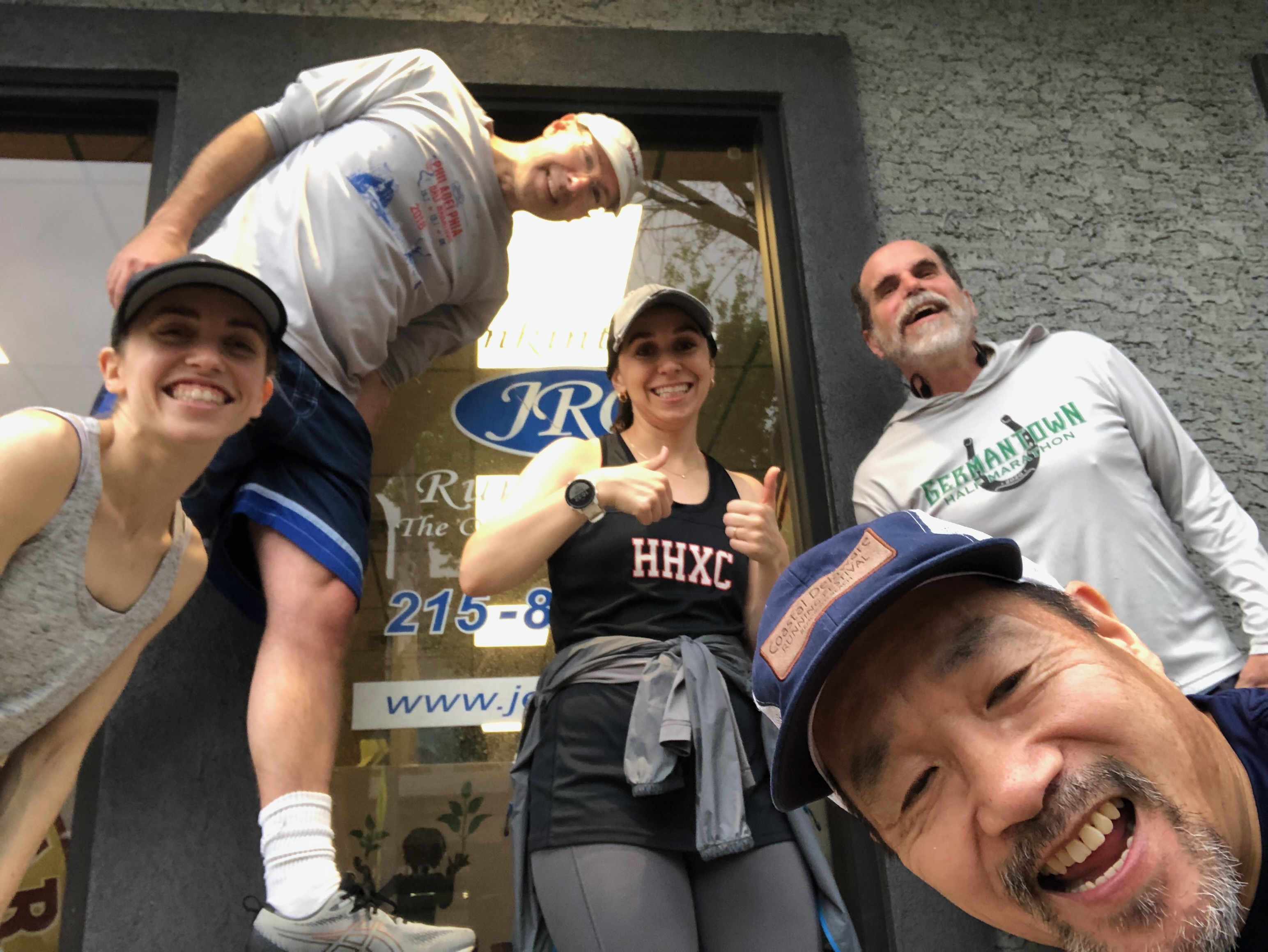 When it was time to take it last week, someone made the automatic suggestion to arrange people based on physical stature. All eyes figuratively went to one particular runner who fits the profile of those who would benefit from a position in the front line. As someone who often himself fits in that same group, I was horrified for the one who could benefit even more. So, I said so in no uncertain terms. Given that no was trying to offend and that the issue of the individual’s stature has never defined them within the group, they didn’t take offense. But my concern did lead to the suggestion that they could stand on a large object. In taking the selfie, I then obscured that object with one even larger. They did take joy at the thought of having to bend down to frame the whole picture properly. At JRC, when we touched down midway through the run, we took another picture and managed to come up with another way to take attention away from the matter of stature.