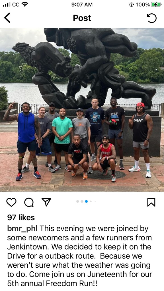 Except for the first time (2020: Thanks, Train Dave!) taking the GGR travel team on the road to visit Black Men Run, I’ve basically been the solo representative. There weren’t a lot of people keeping the club moving just before and during the COVID Twenties. For the GGR’s 4th run with the BMR Philly club, variations o’Jason & Jim comprised the travel team with me. One of my take aways is that you’re not supposed to smile for pictures. Who knew? I do like the look of gravitas; still, next time I’ll have to ask why. They smiled a lot more when we actually ran.