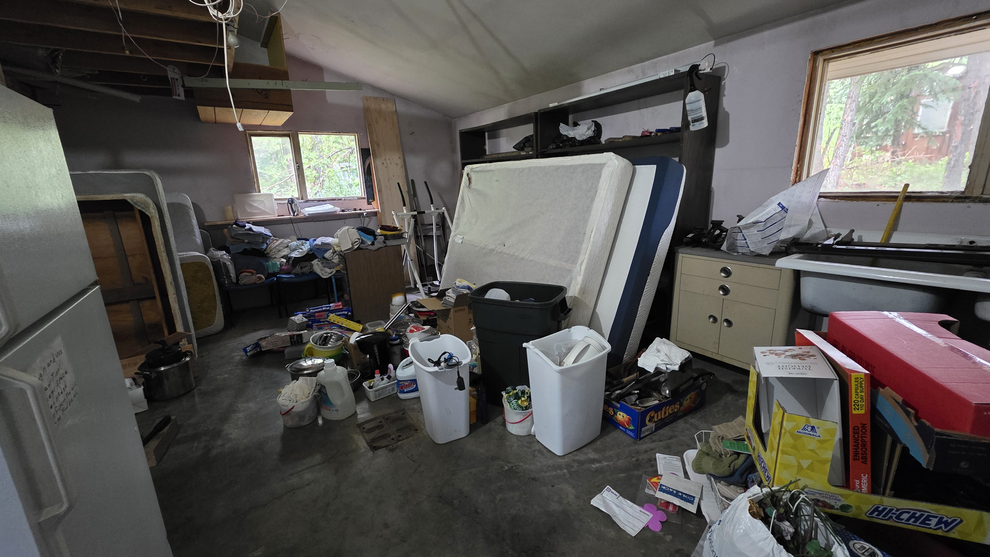 It was dusty, musty, and barely furnished. A bunch of beds and not much more. We had heard that a work group had stayed there a week before, but the only evidence was some sheets on various mattresses. My narrative was that a bunch of teenaged boys had been the moving team from The Willows. In the garage was chairs and dishes we recognized from The Willows that no one bothered to organize and put away. Boys.