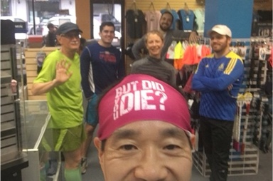 Tim joined us for the first time in such a long while that the new regulars have never met him. He regaled us with feats of recover from running woes (whoas?) such as bursitis and concussion. This was his 4th workout today including 2 Pelaton cycling and we still hadn’t done enough for him though we all questioned what he could still do after a run that finished at 8:00 p.m. (Oh, if we only knew.)