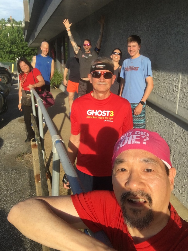 1) Post-script to last week’s message. Dunkin’ Keith said that the reason why he broke 20 minutes at the Run to Rebuild 5K (see previous message) was because he wanted to pass the 2 runners ahead of him. That would have been Shawmont Running Club Vel and me who weren’t even racing! We’ll accept motivational credit.